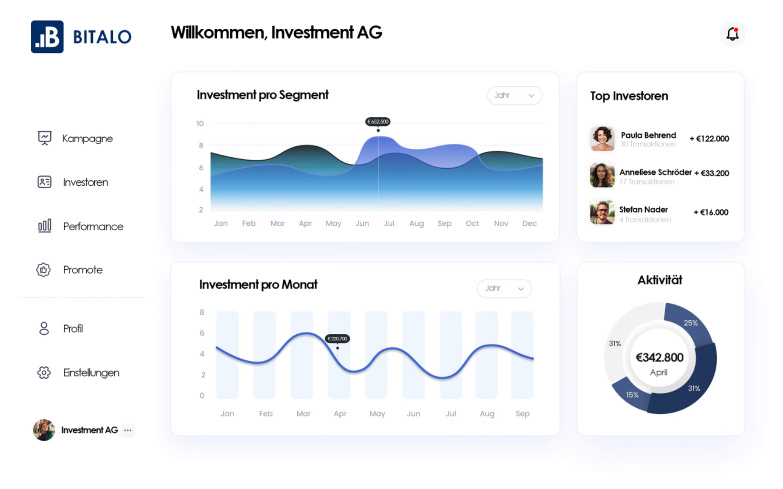 Mit ihrer hochmodernen und digitalen Plattform verbindet Bitalo Investoren und Unternehmen, 24/7, voll digital und BaFin-reguliert in Deutschland.